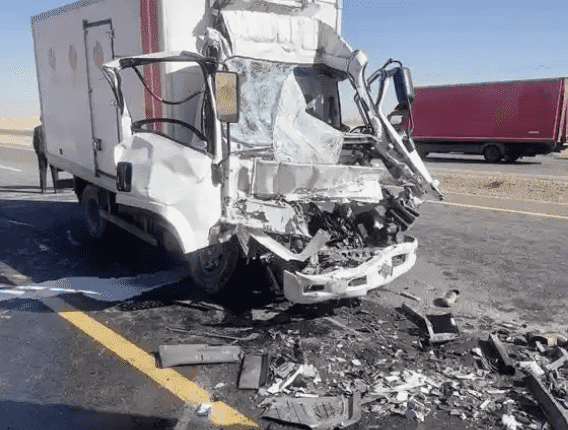 إصابتان بتصادم مركبتي شحن على الصحراوي