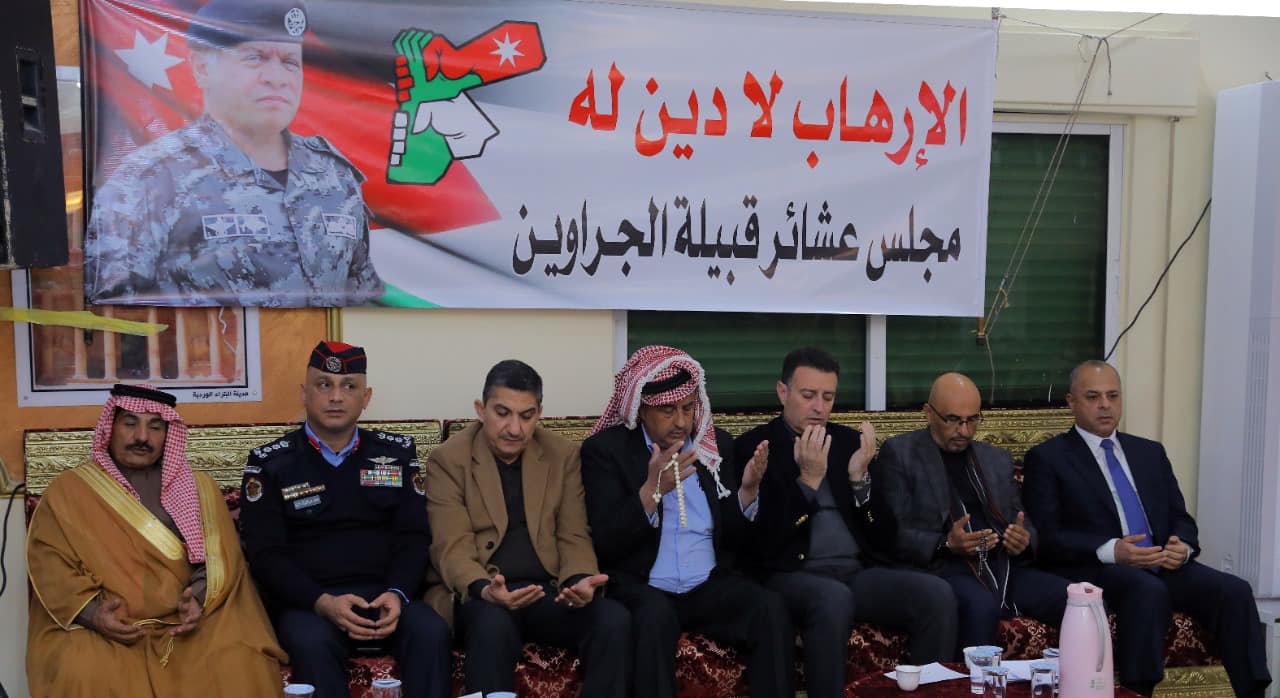 وكان رئيس مجلس عشائر قبيلة الجراوين الشيخ بسام ابو ركبة، والشيخ ماهر ابويحيى والمهندس محمد عودة ابو غليون، اكدوا في كلماتهم وقوف أبناء القبيلة صفا واحدا خلف جلالة الملك وجيشنا وأجهزتنا الأمنية.