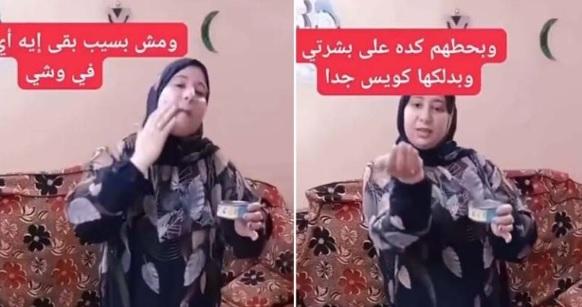 بالفيديو: سيدة مصرية تستخدم طريقة غريبة للعناية ببشرتها