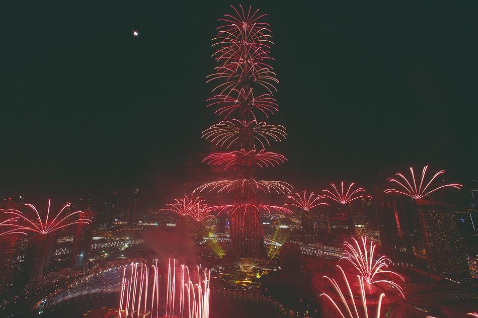 وتُشكّل عروض الألعاب النارية جزءاً أساسياً من الاحتفالات في دبي مساء 31 ديسمبر الجاري، وتقام هذه العروض في عدد من "وجهات دبي" الرئيسية من نقاط الجذب السياحية والساحات العامة إضافة إلى عدد من الفنادق المتميزة. ويقدم برج خليفة، مع حلول منتصف الليل، عرضاً هو الأكبر على الإطلاق ويكون محط أنظار العالم وتنقله الفضائيات العالمية على الهواء مباشرة. كما تقدم مجموعة من أبرز معالم دبي الشهيرة عروضها الخاصة احتفالاً بالعام الجديد، بما في ذلك: برج العرب، وبرواز دبي، وجزيرة بلوواترز، وذا بييتش، وجميرا بيتش ريزيدنس.