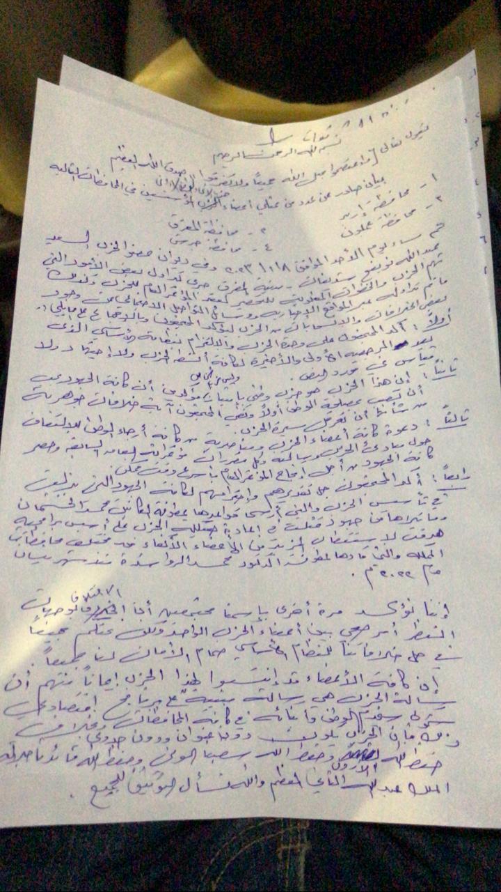 بيان صادر عن ممثلي اعضاء حزب الاتحاد الوطني الاردني في المحافظات التالية