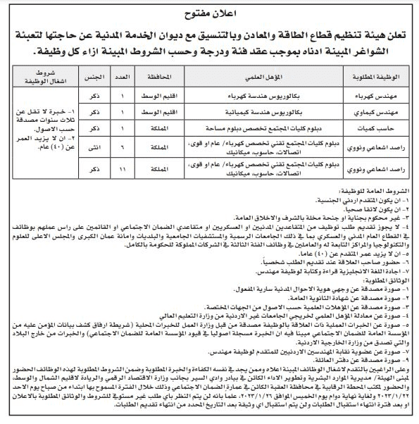 نبأ الأردن-أعلنت عدد من المؤسسات الحكومية، اليوم الخميس، عدد من الوظائف الشاغرة لديها، بالتنسيق مع ديوان الخدمة المدنية.