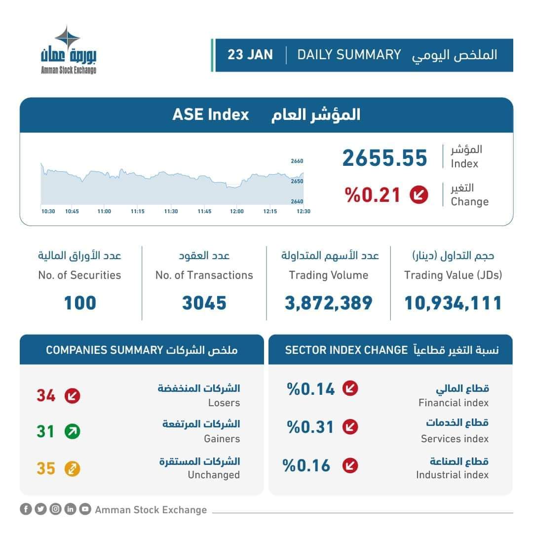 الملخص اليومي لبورصة عمان