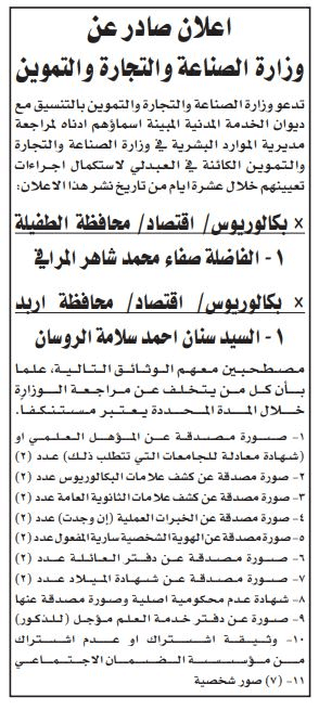 كما دعت مؤسسات أخرى آخرين، لاستكمال إجراءات تعيينهم وإجراء المقابلات الشخصية.