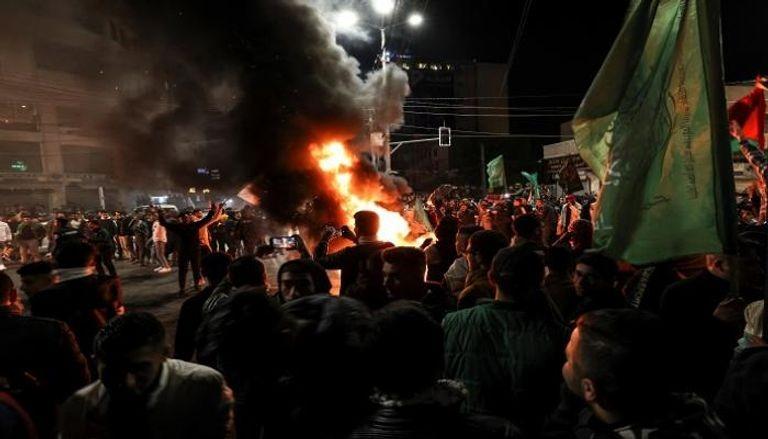 وفي بعض مناطق الضفة الغربية وقطاع غزة والقدس الشرقية، نزل الفلسطينيون إلى الشوارع للاحتفال بالهجوم من خلال توزيع الحلوى وإطلاق الألعاب النارية، بحسب صحيفة "جيروزاليم بوست".