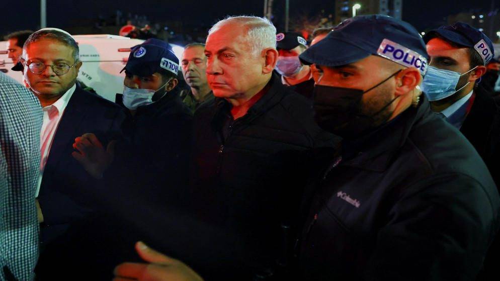 وتفقّد رئيس الوزراء الإسرائيلي موقع إطلاق النار حيث تجمعت حشود هتفت "الموت للعرب".