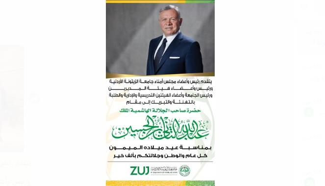 جامعة الزيتونة تهنئ الملك في عيد ميلاده