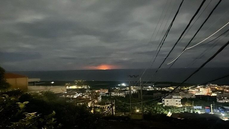 لبنان .. حريق غامض في عرض البحر - فيديو