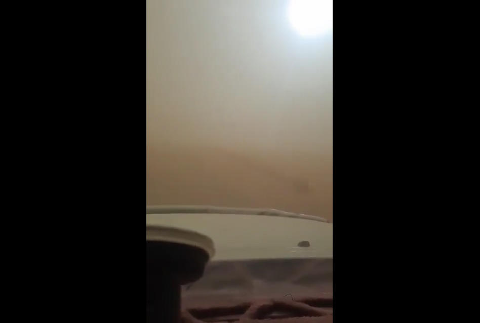 وتداول ناشطون فيديو يظهر انتشار الغبار الكثيف في منطقة ضبعة.