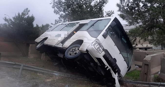 نبأ الأردن- أصيب شخصان صباح اليوم السبت إثر حادث تدهور وانقلاب ( باص متوسط ) يتبع لإحدى الشركات الخاصة، بالقرب من نهاية شارع الامير حسين باتجاه بداية طريق المطار .