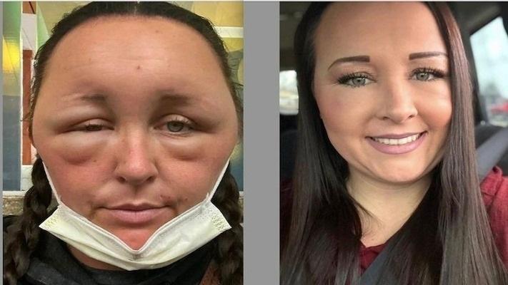 نبأ الأردن-تحولت الامريكية "تينيل" لكائن فضائي غريب بعد أن انتفخ وجهها ورأسها وعينيها بسبب تحسس غريب وشديد تجاه صبغة الشعر.