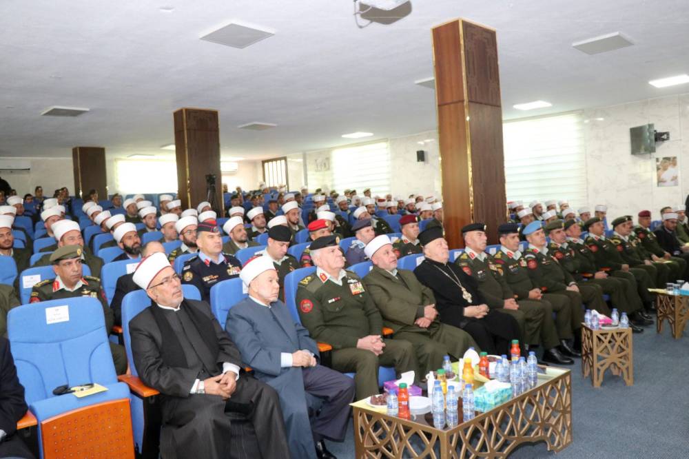 وحضر الاحتفال مفتي عام المملكة وقاضي القضاة وإمام الحضرة الهاشمية وعدد من كبار ضباط القوات المسلحة والأجهزة الأمنية ورؤساء جامعات ومحافظ الزرقاء وعدد من الملحقين العسكريين وضباط الدول الصديقة والشقيقة، ومندوبون من وزارة الأوقاف، ودائرة الإفتاء العام ودائرة قاضي القضاة ودائرة إفتاء الأمن العام، وعدد من القساوسة الأميركان.