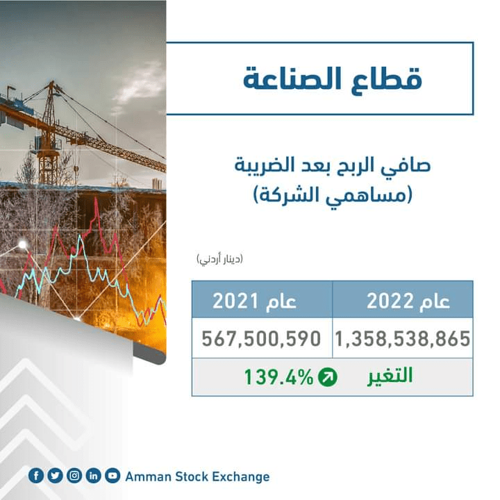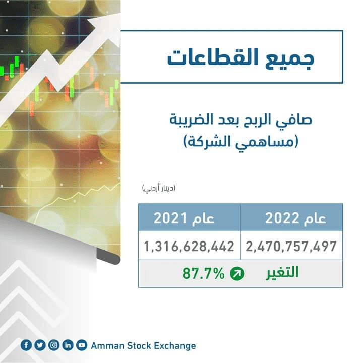 نبأ الأردن - تالياً ملخص النتائج الأولية للشركات المساهمة العامة للعام 2022 مقارنة مع الأرباح المتحققة لعام 2021 قطاعياً :