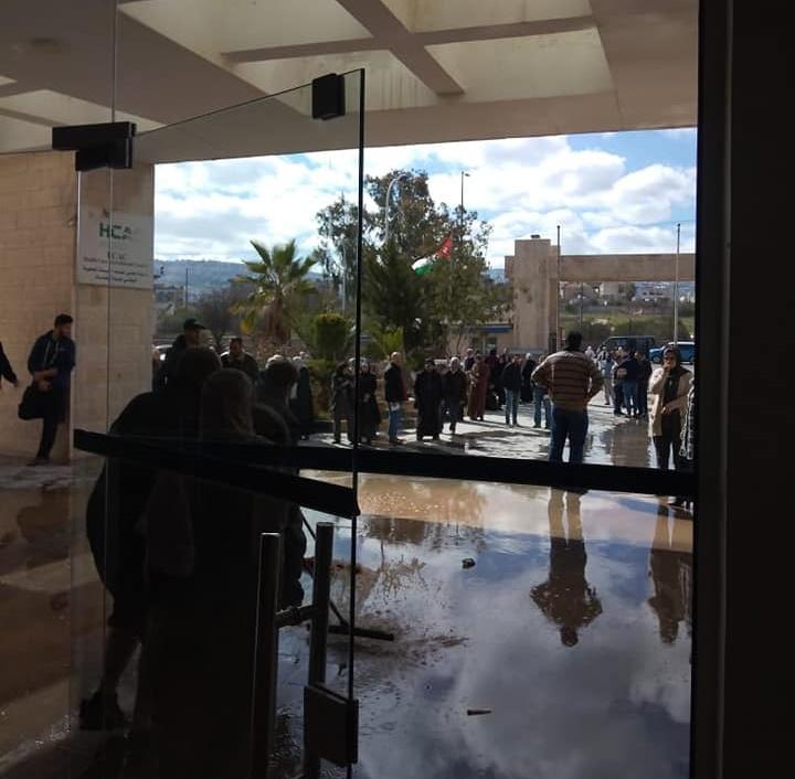 وقال شهود عيان إنه وأثناء تجربة نظام الحريق في المستشفى، فإن ضغط المياه داخل مواسير المياه أدى الى انفجار المواسير مما شكل حالة هلع بين المراجعين وخروجهم الى الساحات الخارجية.