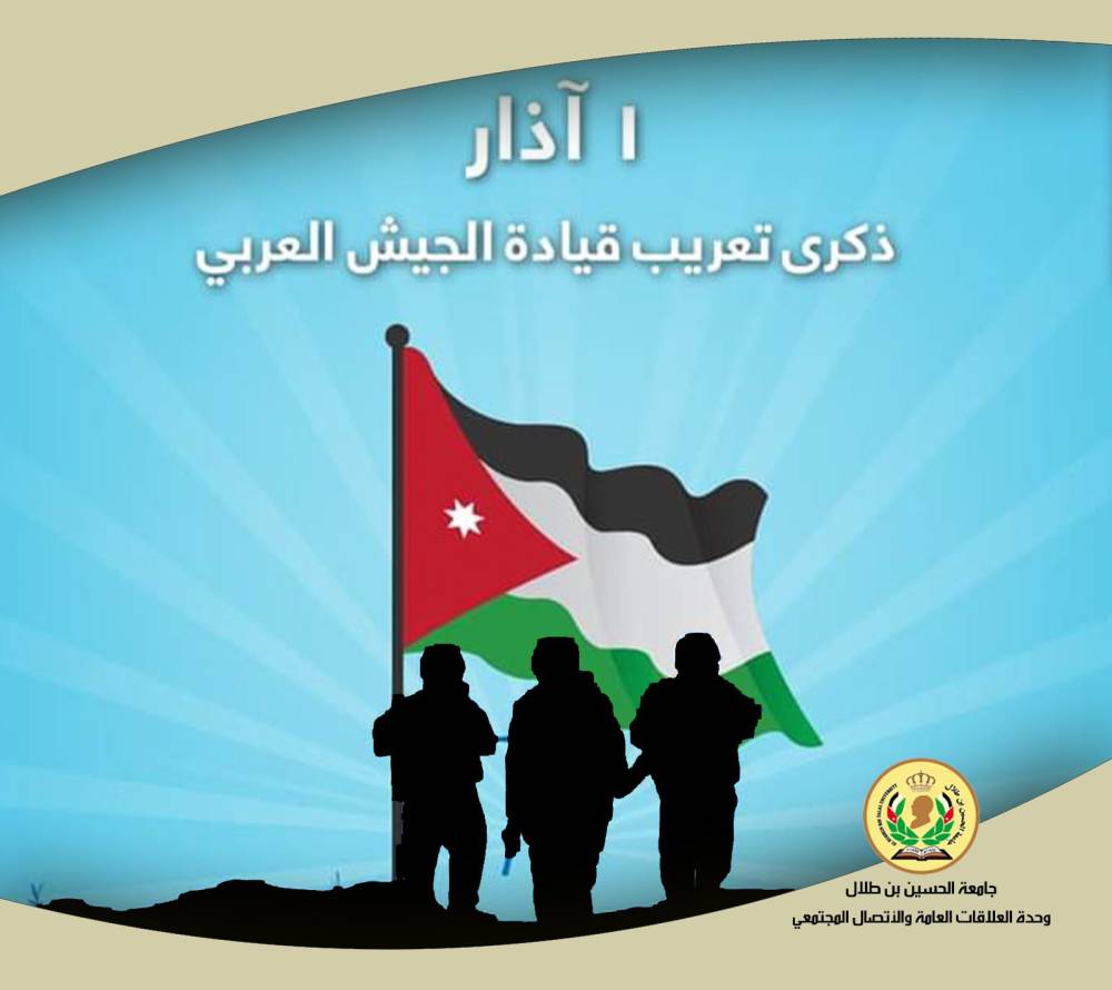نبأ الأردن-يتقدم رئيس جامعة الحسين بن طلال الاستاذ الدكتور عاطف الخرابشة إلى مقام حضرة صاحب الجلالة الهاشمية الملك عبدالله الثاني ابن الحسين المعظم حفظه الله ورعاه وولي عهده الأمير الحسين بن عبدالله بإسمه ونيابة عن أسرة الجامعة ممثلة بكادرها التدريسي والإداري والطلبة بأطيب آيات التهنئة والمباركة بمناسبة الذكرى السابعة والستين لتعريب قيادة الجيش العربي، وانه في هذه المناسبه نستذكر القرار التاريخي الشجاع الذي اتخذه المغفور له جلالة الملك الحسين بن طلال طيب الله ثراه بتعريب قيادة الجيش العربي وتسليمها للضباط الأردنيين لترسيخ المعاني السامية للسيادة والحرية، كما ونعتز بما شهدته وتشهده القوات المسلحة الأردنية الجيش العربي اليوم في عهد جلالة الملك عبدالله الثاني من تطوير وتحديث لتكون بأعلى درجات الجاهزية والاحتراف ونموذجا في العطاء.