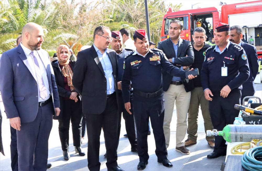 وقدم المقدم السرحان لرئيس الجامعة الدكتور الحلحولي ولطلبتها وموظفيها شرح مفصل عن المعرض والاليات والمعدات المستخدمة في عمليات الإنقاذ والإسعاف والإطفاء وإنقاذ حالات الاختناق والكسور ومحاضرات توعوية.