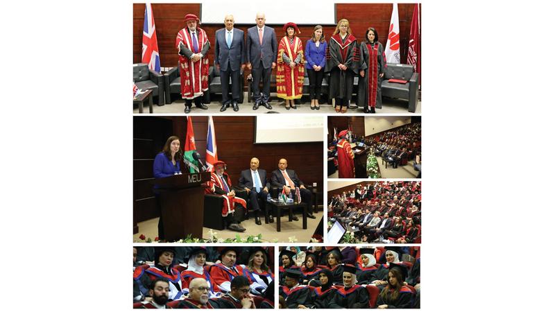 نبأ الأردن - رعت السفيرة البريطانية في عمان، بريدجيت بريند، حفل تخريج طلبة البرامج الدولية لبرنامجيّ الماجستير والدكتوراة في جامعة الشرق الأوسط، بحضور رئيس هيئة اعتماد مؤسسات التعليم العالي وضمان جودتها الدكتور ظافر الصرايرة، ورئيس مجلس أمناء جامعة الشرق الأوسط العين الدكتور يعقوب ناصر الدين، ورئيستيّ جامعتي بيدفورشير الدكتورة ريبيكا بنتنغ، والشرق الأوسط الدكتورة سلام المحادين.