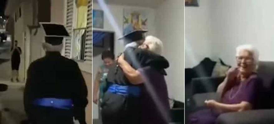 وفي مقطع فيديو لطيف نشره موقع «غوود نيوز» الكندي على «إنستغرام»، يظهر الرجل بزي التخرج مصطحباً شهادته الجامعية إلى منزل والدته البالغة 98 عاماً مباشرة بعد انتهاء حفل توزيع الشهادات، لأنها لم تكن قادرة على حضور الحفل.