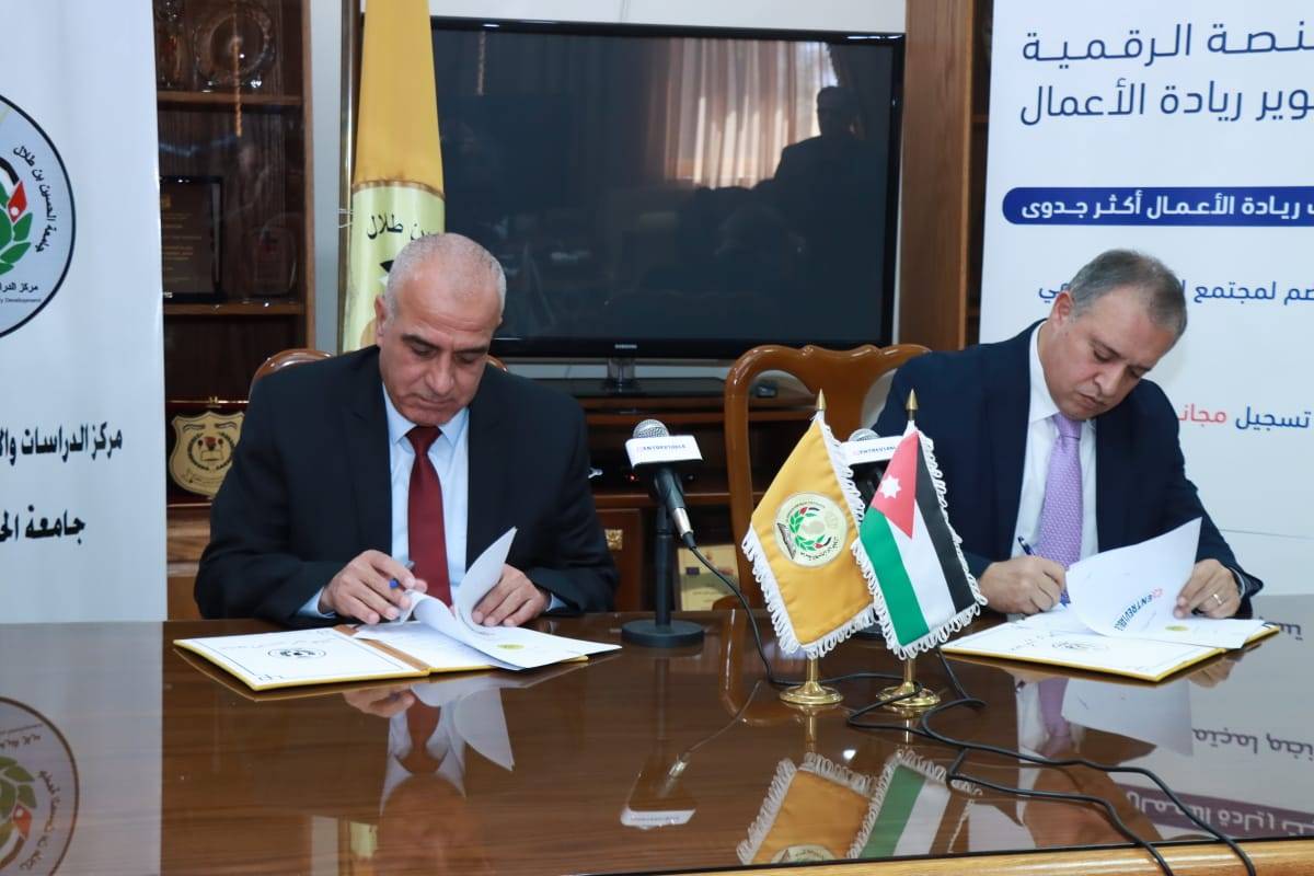 توقيع مذكرة تفاهم بين جامعة الحسين بن طلال وشركة المنصة الرقمية لتطوير ريادة الأعمال