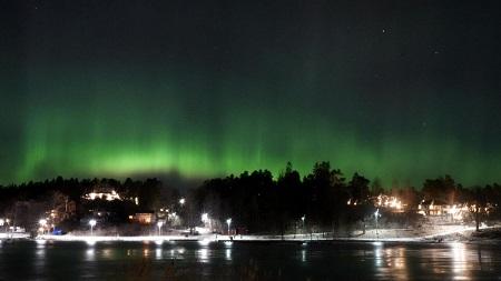 وتمكّن سكان المنطقة من رؤية موجات من الألوان البيضاء والخضراء المزيفة، أضاءت السماء بعد الساعة السادسة والنصف مساءً بتوقيت غرينتش، وأزاحت تدريجاً الشفق القطبي "الحقيقي" الذي كان يضيء السماء حينها.