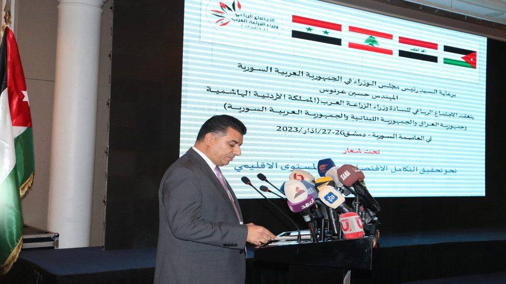 واتفق الوزراء في البيان الختامي الصادر عن الاجتماع الرباعي الذي عقد في دمشق على مدى يومين على إيجاد صيغة للتعاون والتنسيق والتكامل في المجالات الزراعية والخدمات المرتبطة بها، لتحقيق أفضل درجات التنسيق في مجال الزراعة والغذاء بين الدول الأربع.