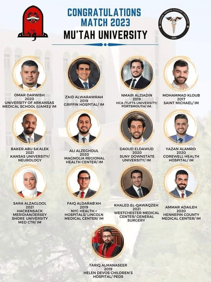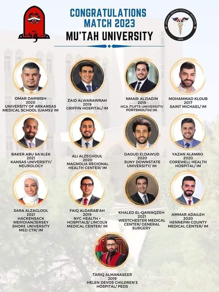نبأ الأردن - كتب د.محمد المعايطة - تمكن 13 طبيبا من خريجي جامعة مؤتة الحصول على مقاعد إقامة في الولايات المتحدة لهذا العام، وهو الأمر الذي يعكس تميز كلية الطب ومنافستها من خلال خريجيها المميزين محليا ودوليا.