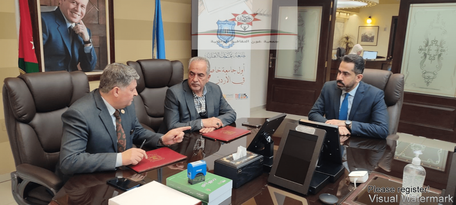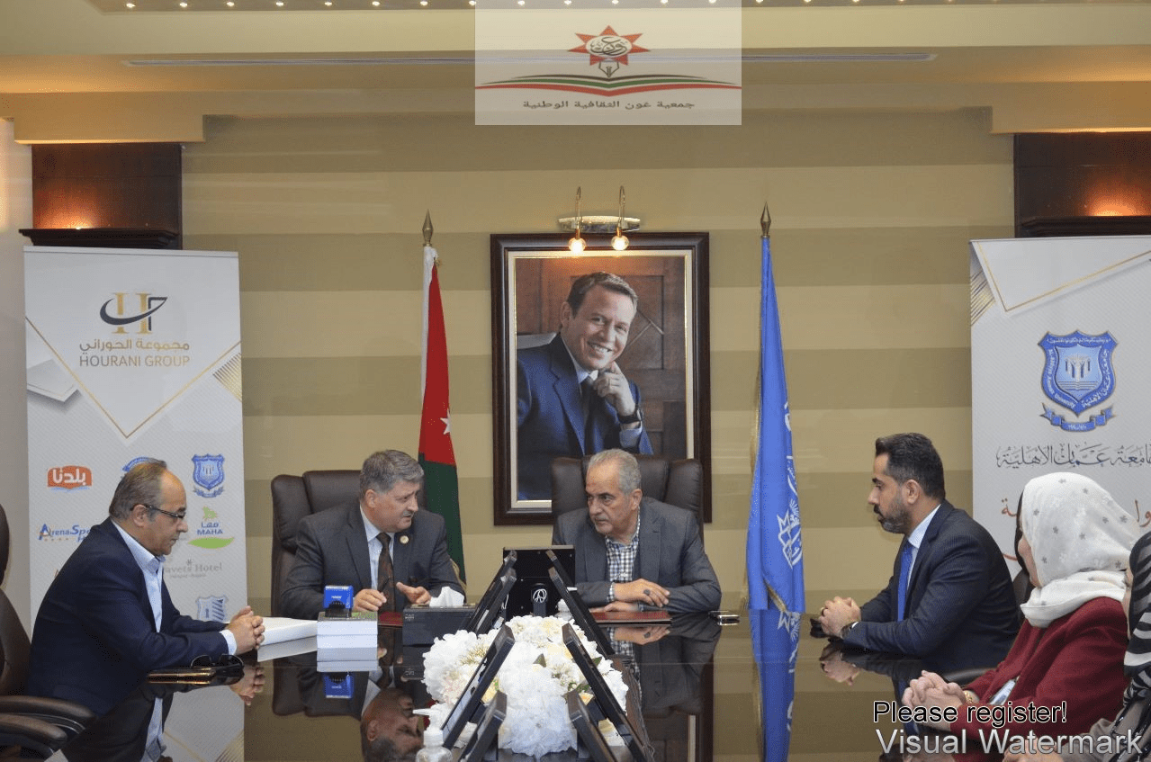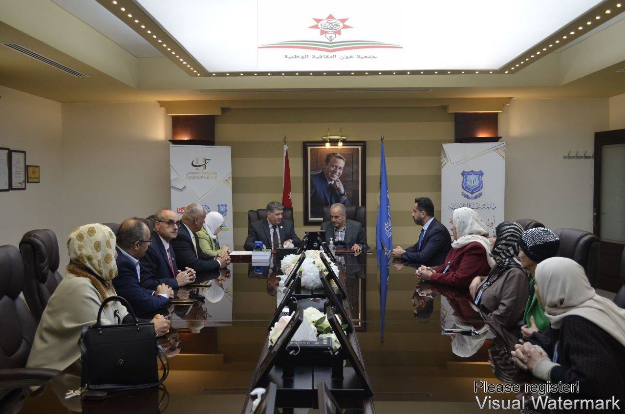 وجاء توقيع المذكرة نتاجاً للزيارة السابقة التي قام بها وفد الجمعية الذي أطلع خلالها رئيس الجامعة على رؤية الجمعية وأهدافها والمشروعات التي تعمل على تنفيذها بتوثيق الجهود الوطنية في بناء الدولة الأردنية والدفاع عن قضايا الأمة العادلة وفي مقدمتها القضية الفلسطينية.