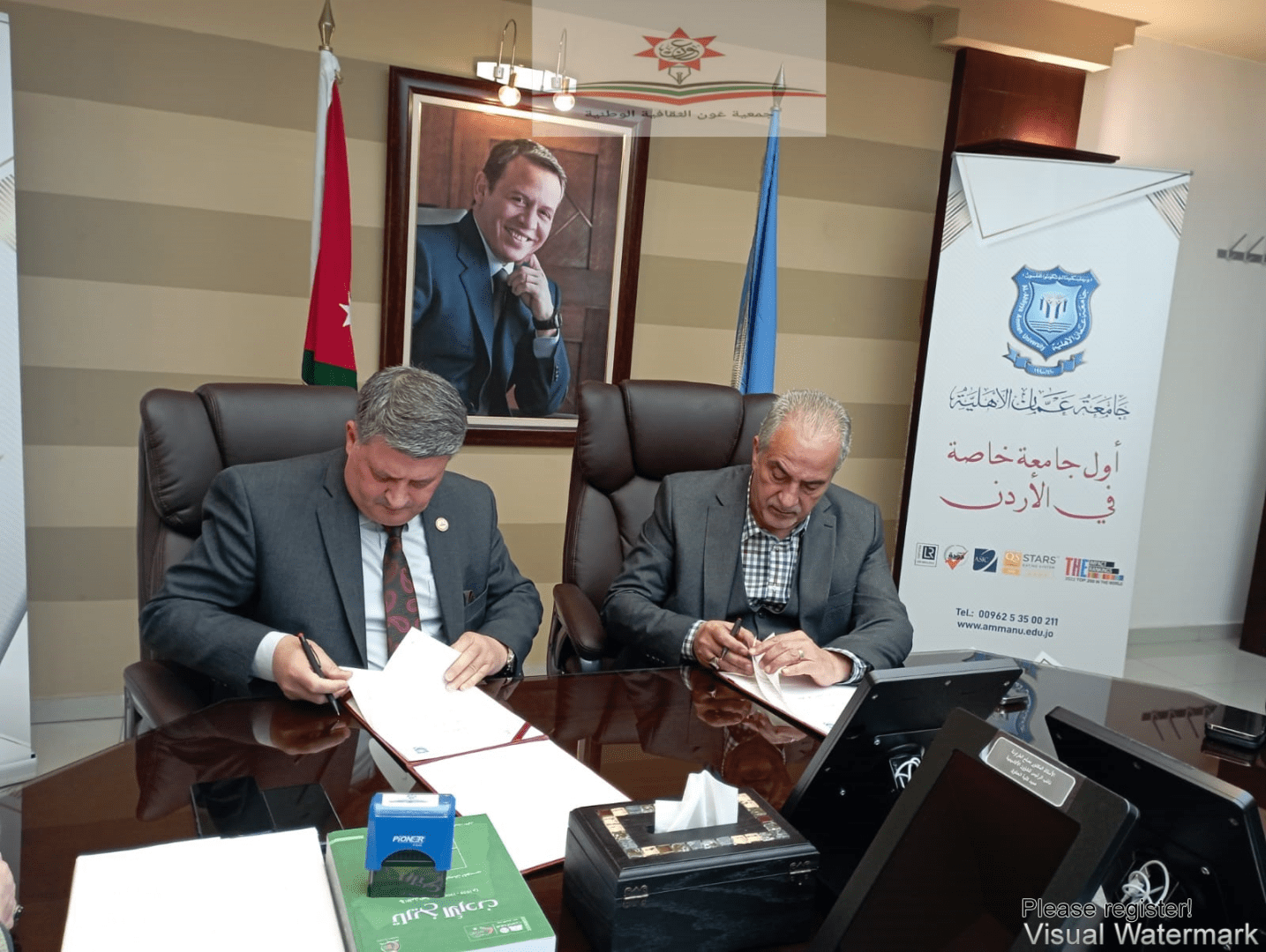 نبأ الأردن - وقِعَت في جامعة عمان الأهلية -أول جامعة خاصة في الأردن - مذكرة تعاون بين الجامعة وجمعية عَون الثقافية الوطنية بهدف التعاون لتوحيد الجهود الوطنية بجمع وحفظ وأرشفة تاريخ الأردن ونشره والتوعية به من خلال تعزيز التعاون بين الطرفين في مجال الدراسات الأكاديمية والأبحاث والندوات وإقامة المؤتمرات.