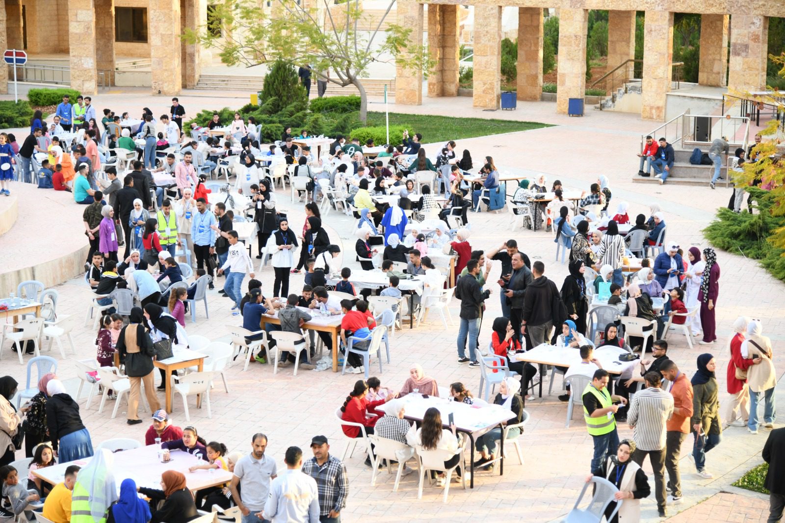 نبأ الأردن - أقامت عمادة شؤون الطلبة في جامعة العلوم والتكنولوجيا الأردنية، بالتعاون مع مبادرة بصمة حفل إفطار رمضاني خيري في الحرم الجامعي بعنوان "بسمة صائم" لأكثر من (400) طفل يتيم من جمعيات مختلفة، بحضور عدد من أعضاء الهيئتين التدريسية والإدارية وفريق عمادة شؤون الطلبة وجمع من الطلبة المتطوعين.