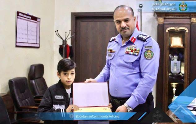 مدير شرطة الرصيفة يكرم طفلاً لأمانته