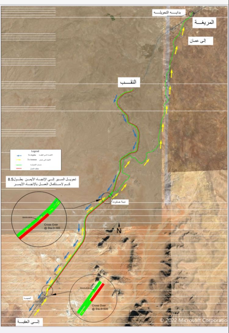 نبأ الأردن- اعلنت وزارة الأشغال العامة والإسكان عن الانتهاء من اعمال المسرب الأيمن المتجه من عمان إلى العقبة (نزول النقب) لمشروع إعادة تأهيل الاجزاء المتبقية الاكثر تضررا من الطريق الصحراوي للمنطقة الواقعة من رأس النقب الى الحميمة.