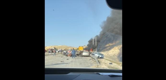 واشترك في الحادث سيارة سياحية و3 شاحنات بالإضافة إلى تكسى مطار.