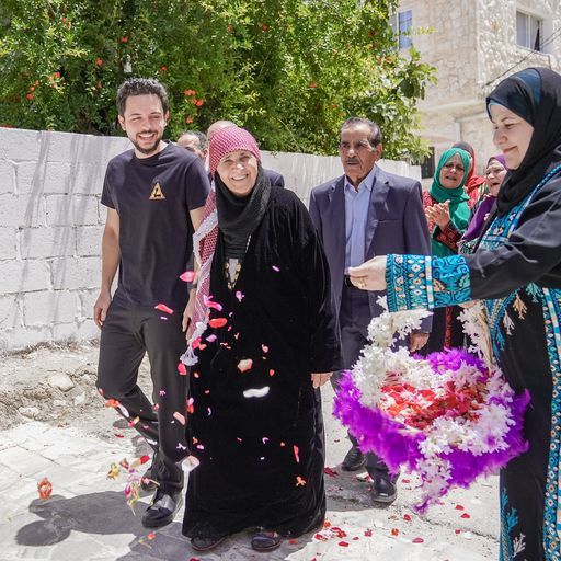 نبأ الأردن - لبّى سمو ولي العهد الأمير الحسين، دعوة الحاجة أم مهند عبيدات لزيارة منزلها في قرية حرثا شمال مدينة إربد.