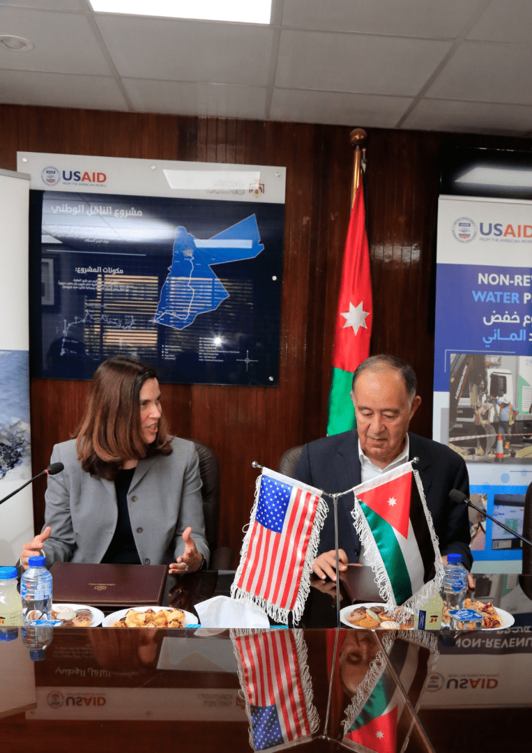 نبأ الأردن - وقع وزير المياه والري المهندس محمد النجار مع السيدة مارغريت سبيرز القائمة بأعمال المدير الإقليمي للوكالة الامريكية USAID بحضور الدكتور جهاد المحاميد امين عام الوزارة المهندسة منار المحاسنة امين عام سلطة وادي الأردن و أمين عام سلطة المياه بالوكالة المهندس رامي أبو رواق والمدراء التنفيذيين لشركات المياه مياهنا ، العقبة واليرموك اتفاقية مشروع خفض الفاقد المائي المرحلة الرابعة حيث تصل قيمة التمويل في هذه المرحلة 250 مليون دولار امريكي وبمساهمة إضافية من الوزارة بقيمة نحو 75 مليون دولار لتنفيذ المشروع خلال 6 سنوات قادمة .