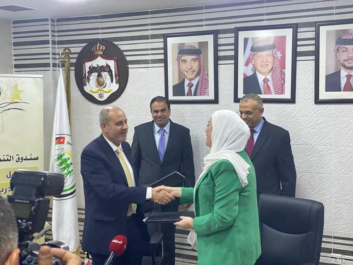 وقع وزير الصناعة والتجارة والتموين وزير العمل رئيس مجلس ادارة صندوق التنمية والتشغيل معالي يوسف محمود الشمالي و وزير التنمية الاجتماعية معالي وفاء بني مصطفى رئيس اللجنة الوزارية لتمكين المرأة اليوم في وزارة التنمية الاجتماعية مذكرة تفاهم ما بين وزارة التنمية الاجتماعية وصندوق التنمية والتشغيل تضمنت تخصيص برنامج تمويلي للمرأة ، بحضور عطوفة مدير عام صندوق التنمية والتشغيل منصور عودة الوريكات وأمين عام وزارة التنمية الاجتماعية الدكتور برق الضمور.