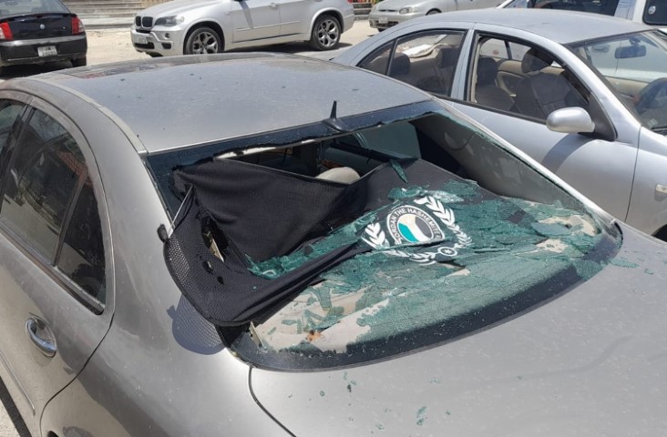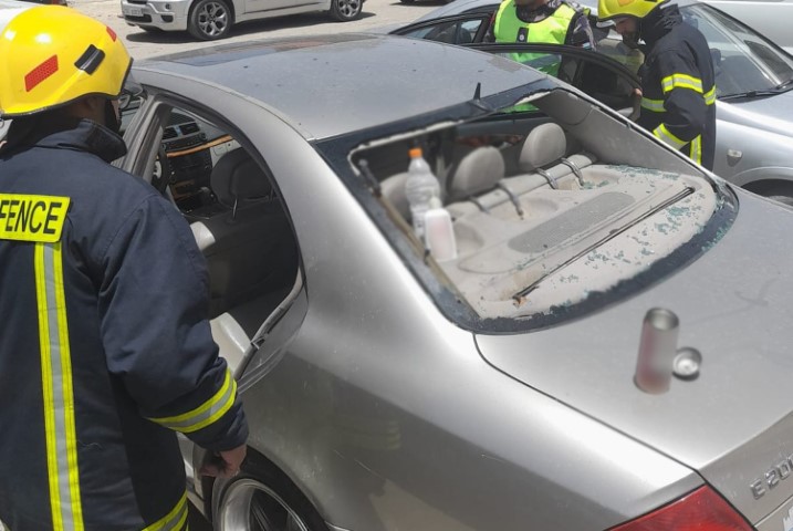 تحطم زجاج خلفي لمركبة مصطفة في الكرك بأحد المواقف نتيجة لوجود علبة (معطر جو) داخل المركبة.