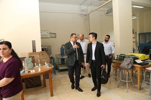 وتضمنت الزيارة جولة في مبنى الكلية، اطلع خلالها على ما يحتويه من مشغل الازياء ومختبر الواقع الافتراضي ومركز التصميم والتصنيع المتقدم.