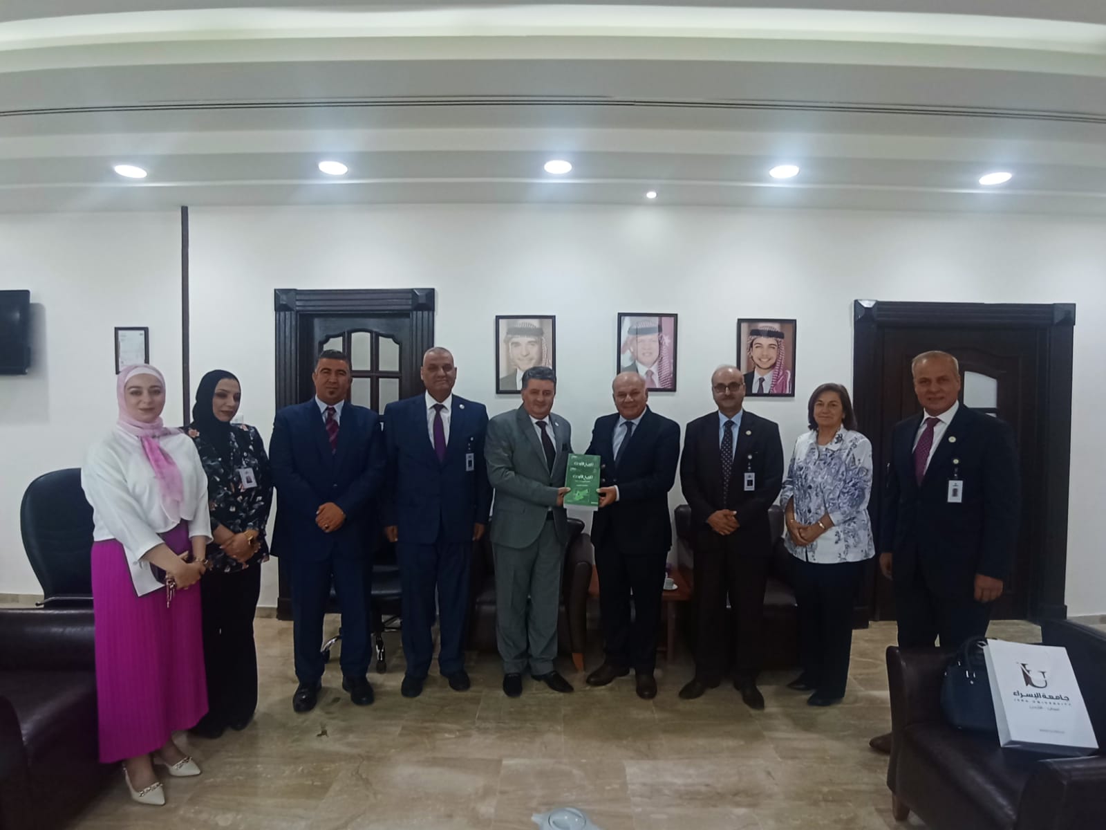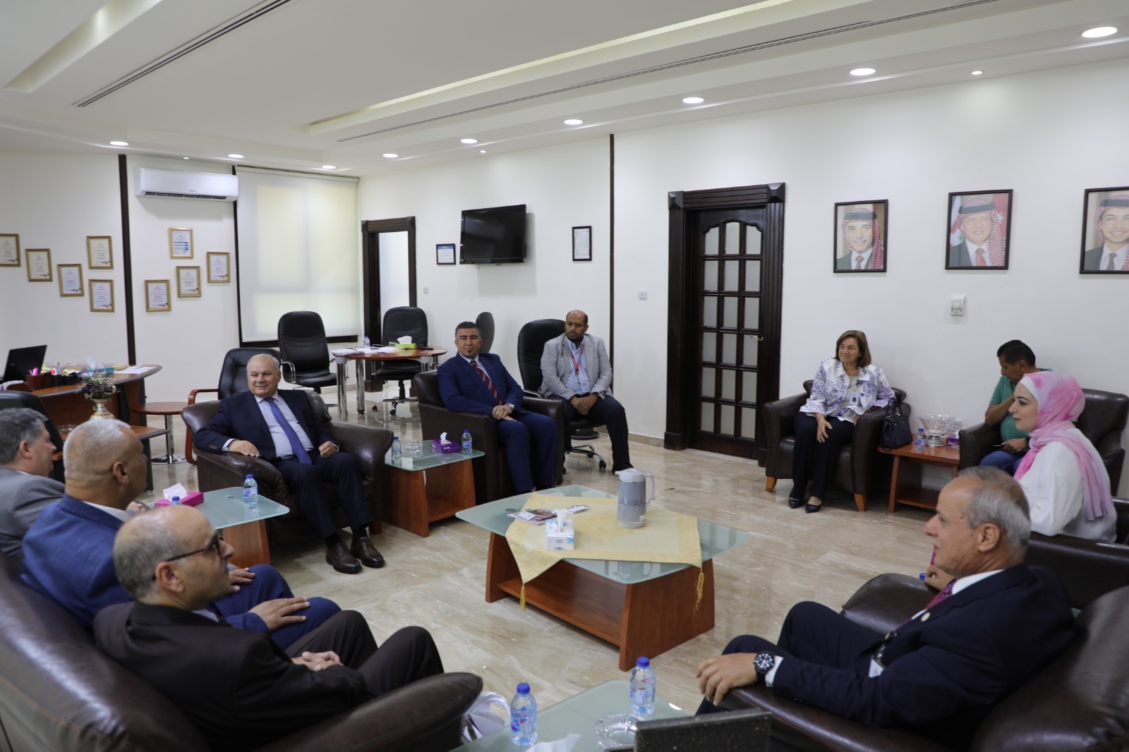 وكان بإستقبال رئيس وأعضاء الوفد معالي الأستاذ الدكتور محمد حامد رئيس الجامعة بحضور الدكتور نشوان النشوان عميد شؤون الطلبة والسيد يوسف عواد السرور مدير العلاقات العامة