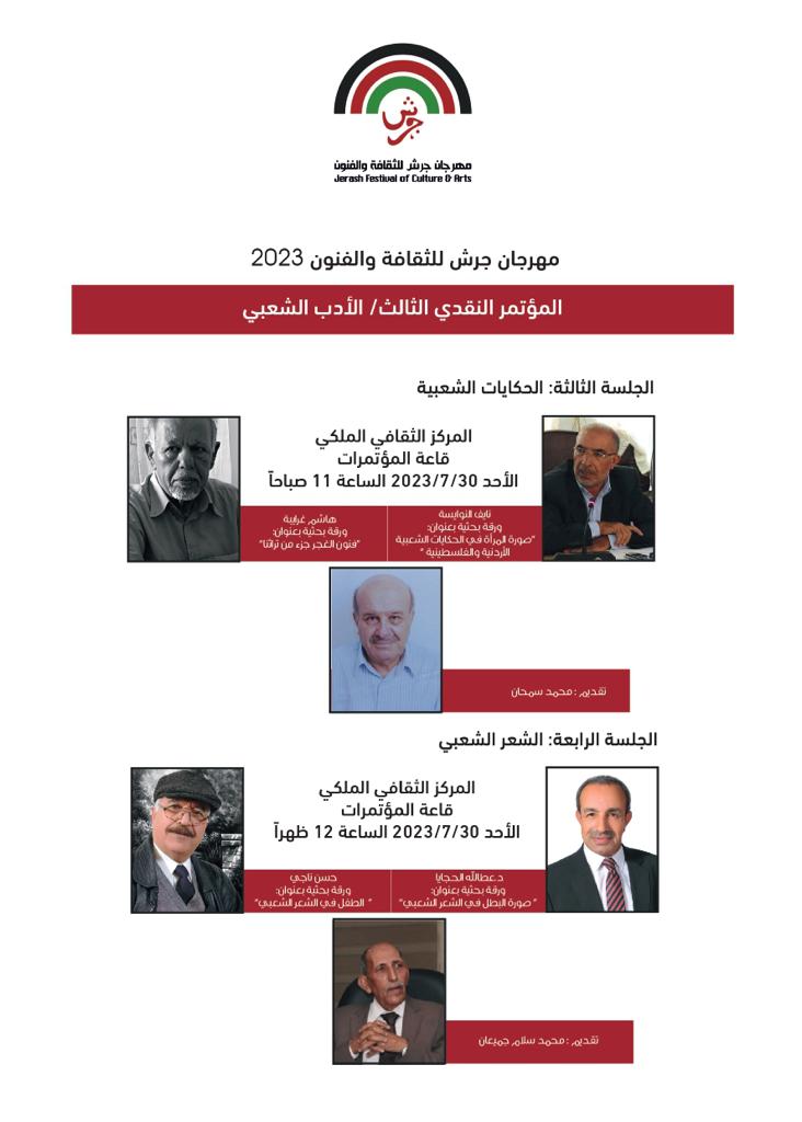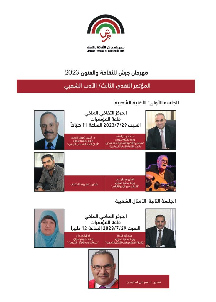 المؤتمر النقدي الثالث- الادب الشعبي يومي السبت والأحد 29 و30 تموز ضمن فعاليات مهرجان جرش للثقافة والفنون 2023