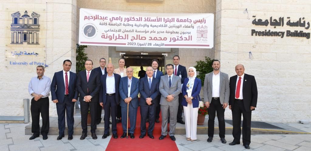وقّع مدير عام المؤسسة العامة للضمان الاجتماعي الدكتور محمد صالح الطراونة ورئيس جامعة البترا الخاصة الدكتور رامي عبد الرحيم بحضور رئيس مجلس أمناء الجامعة دولة الدكتور عدنان بدران مذكرة تفاهم تتضمن تقديم خدمات للمتقاعدين تتمثل بمنح دراسية وخصومات إضافية على رسوم الساعات الدراسية والتدريبية وتقسيطها لأبناء المتقاعدين، إضافة إلى نشر الوعي والمعرفة بأحكام قانون الضمان لدى طلبة الجامعة.