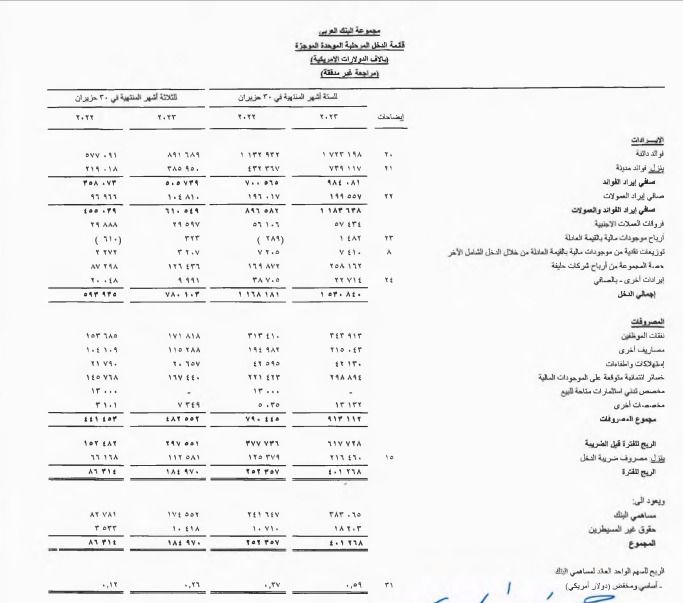 وجاءت تفاصيل النتائج المالية للبنك العربي كما يلي :