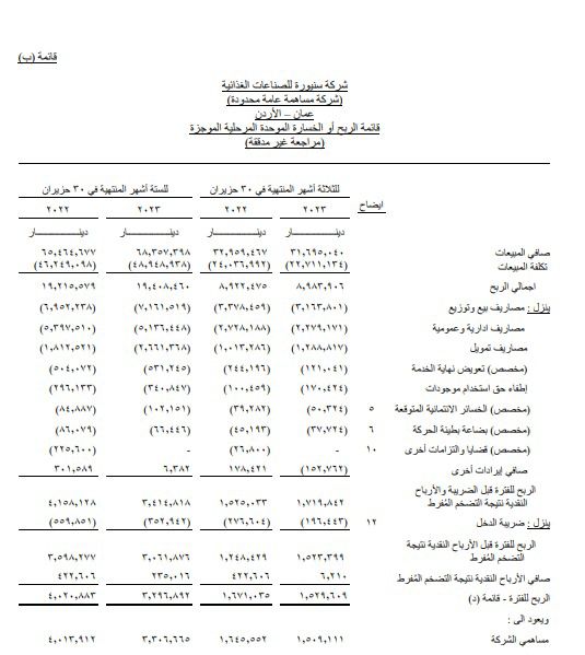 وجاءت تفاصيل النتائج لشركة سنيورة كما يلي: