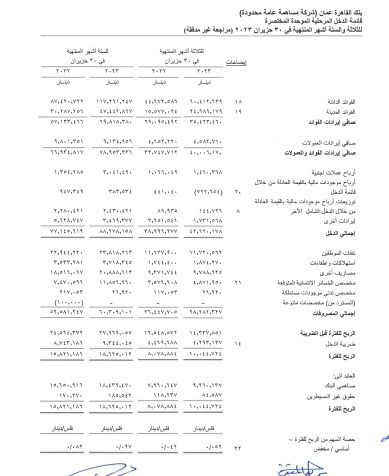وجاءت تفاصيل النتائج للبنك القاهرة عمان كما يلي: