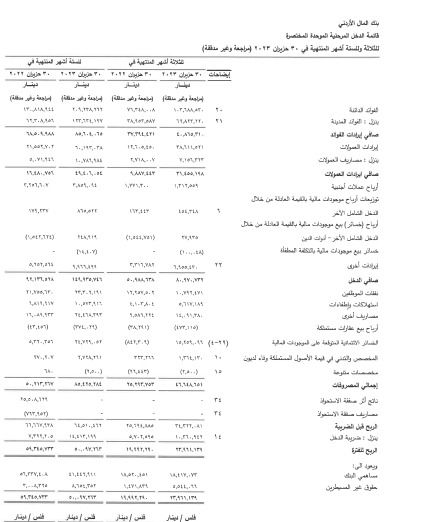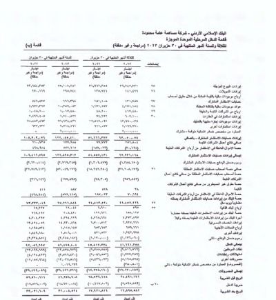 وجاءت تفاصيل النتائج للبنك الإسلامي الأردني كما يلي :