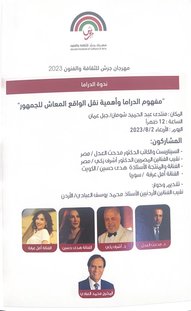 "مفهوم الدراما وأهمية نقل الواقع المعاش للجمهور" ضمن فعاليات جرش الثقافية
