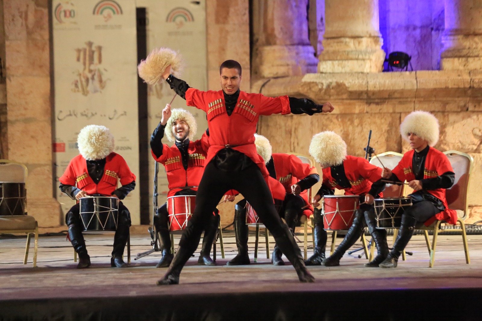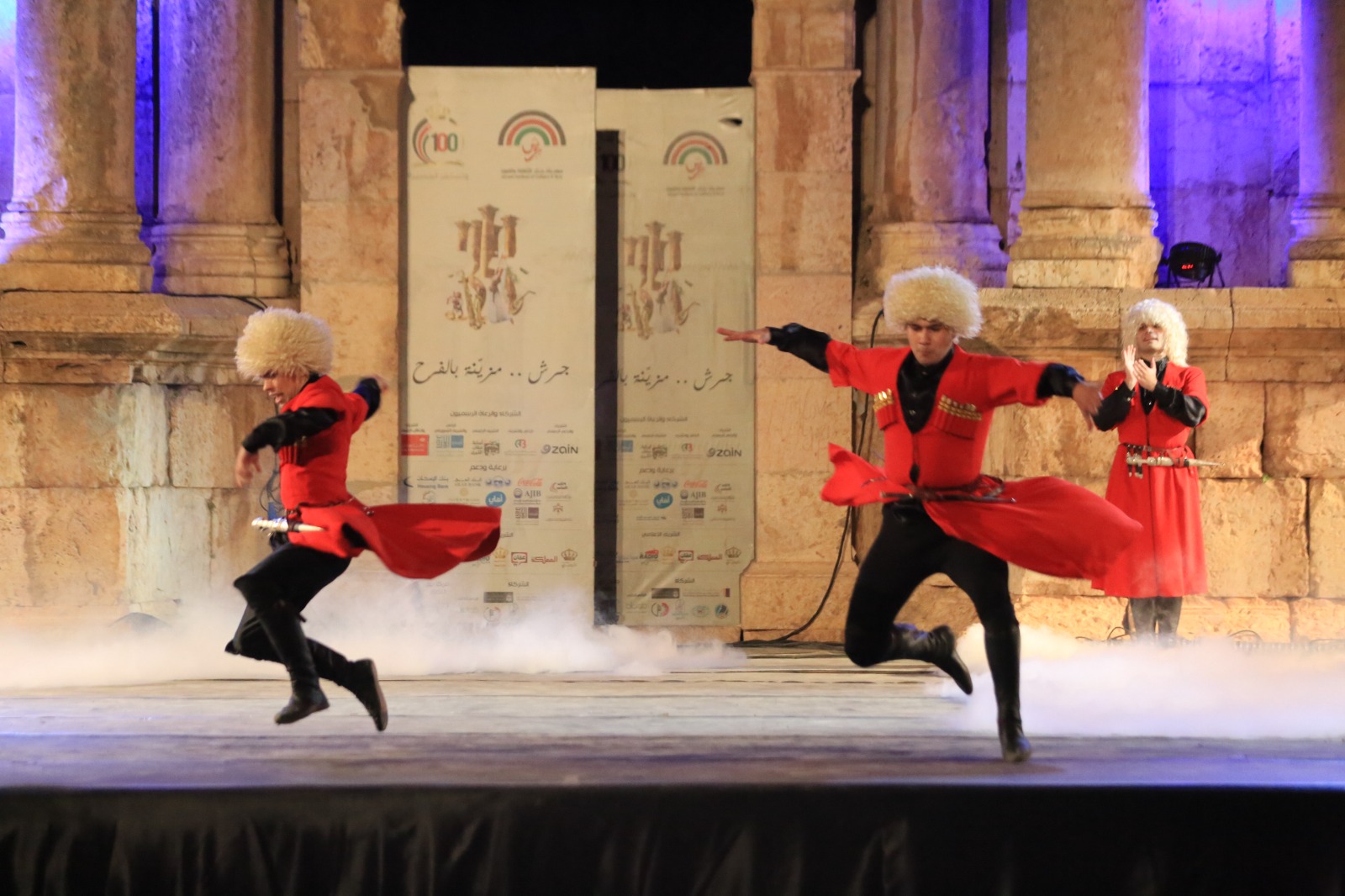 امتلات جنبات المسرح الجنوبي بمحبي الفن الشركسي الأصيل التي اعتادت فرقة النادي الأهلي تقديمه في مهرجان جرش منذ سنين.