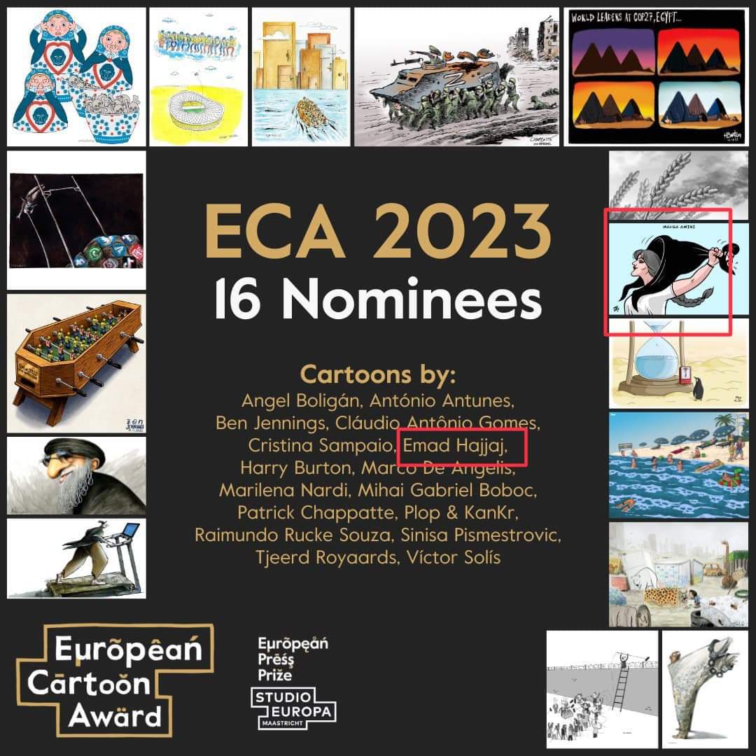 عماد حجاج العربي الوحيد على القائمة القصيرة لجائزة الكاريكاتير الاوروبي 2023