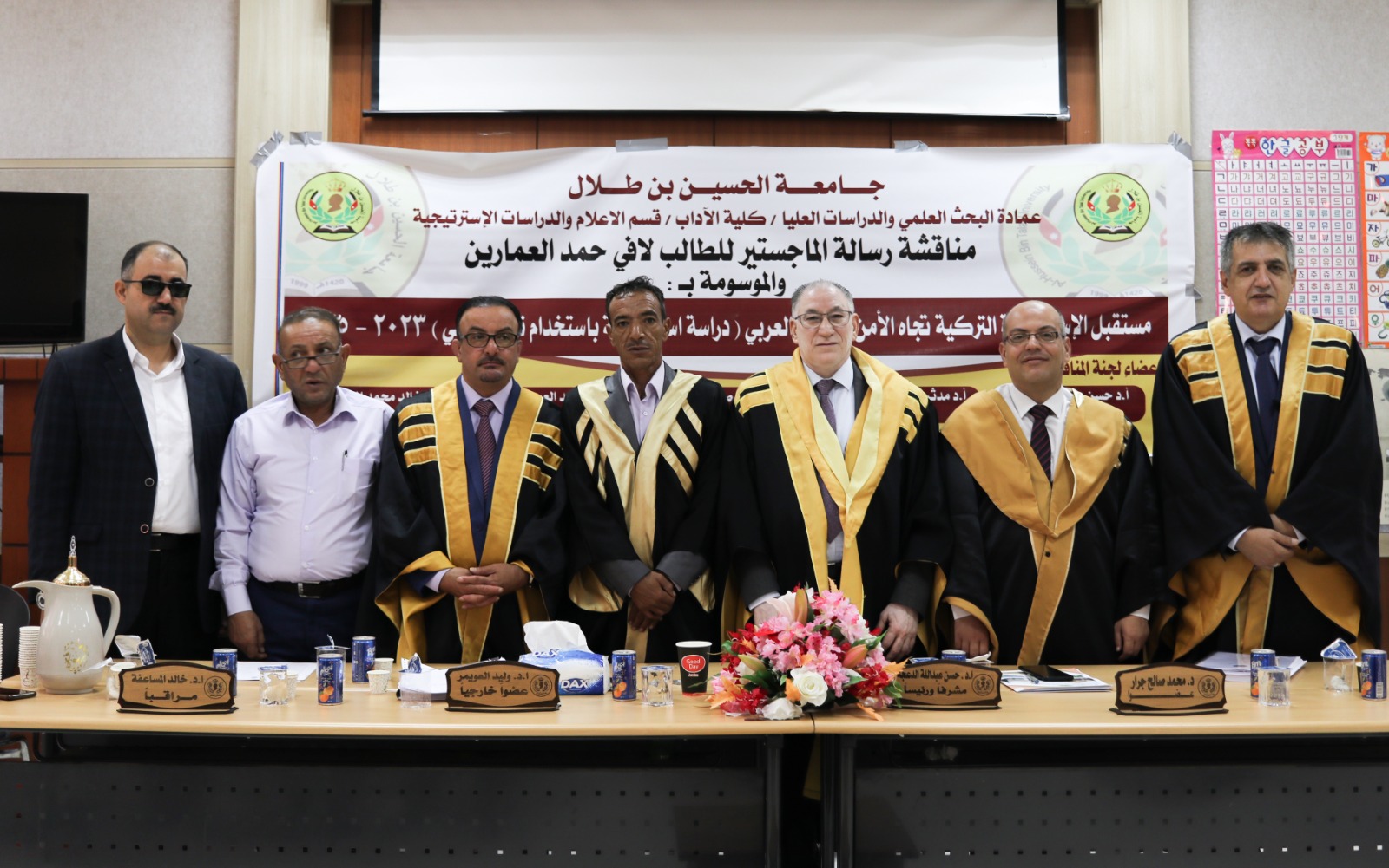 نوقشت في جامعة الحسين بن طلال/ كلية الآداب/ قسم الاعلام والدراسات الاستراتيجية بحضور رئيس جامعة الحسين بن طلال الاستاذ الدكتور عاطف الخرابشة ونائب رئيس الجامعة للشؤون الادارية الاستاذ الدكتور محمد الرصاعي، اول رسالة ماجستير في الدراسات الاستراتيجية بعنوان: مستقبل الاستراتيجية التركية تجاه الأمن القومي العربي ٢٠٢٣- ٢٠٣٥( دراسة استشرافية باستخدام تقنية دلفي) للباحث لافي حمد العمارين.