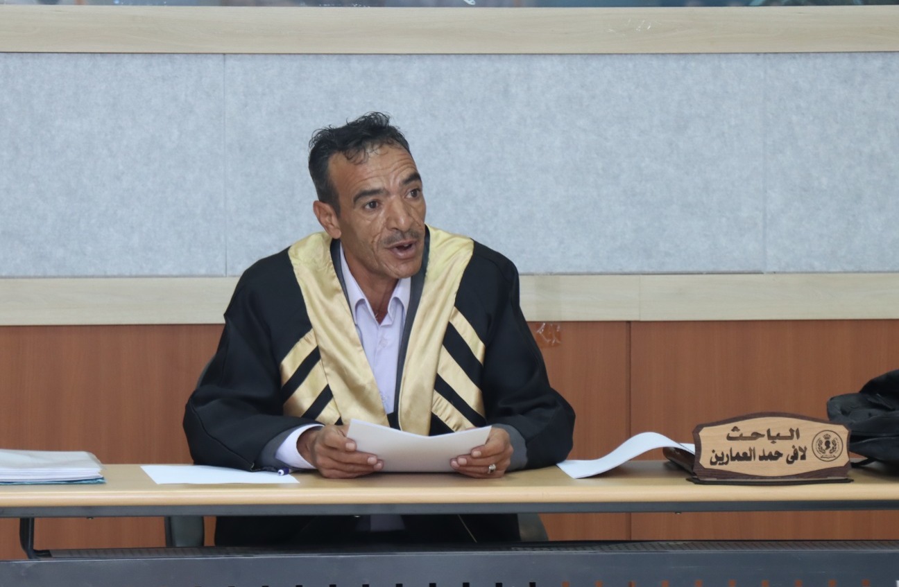 وفي نهاية المناقشة أوصت لجنة المناقشة بمنح الطالب لافي حمد العمارين درجة الماجستير في الدراسات الاستراتيجية بعد اجراء التعديلات المطلوبة.