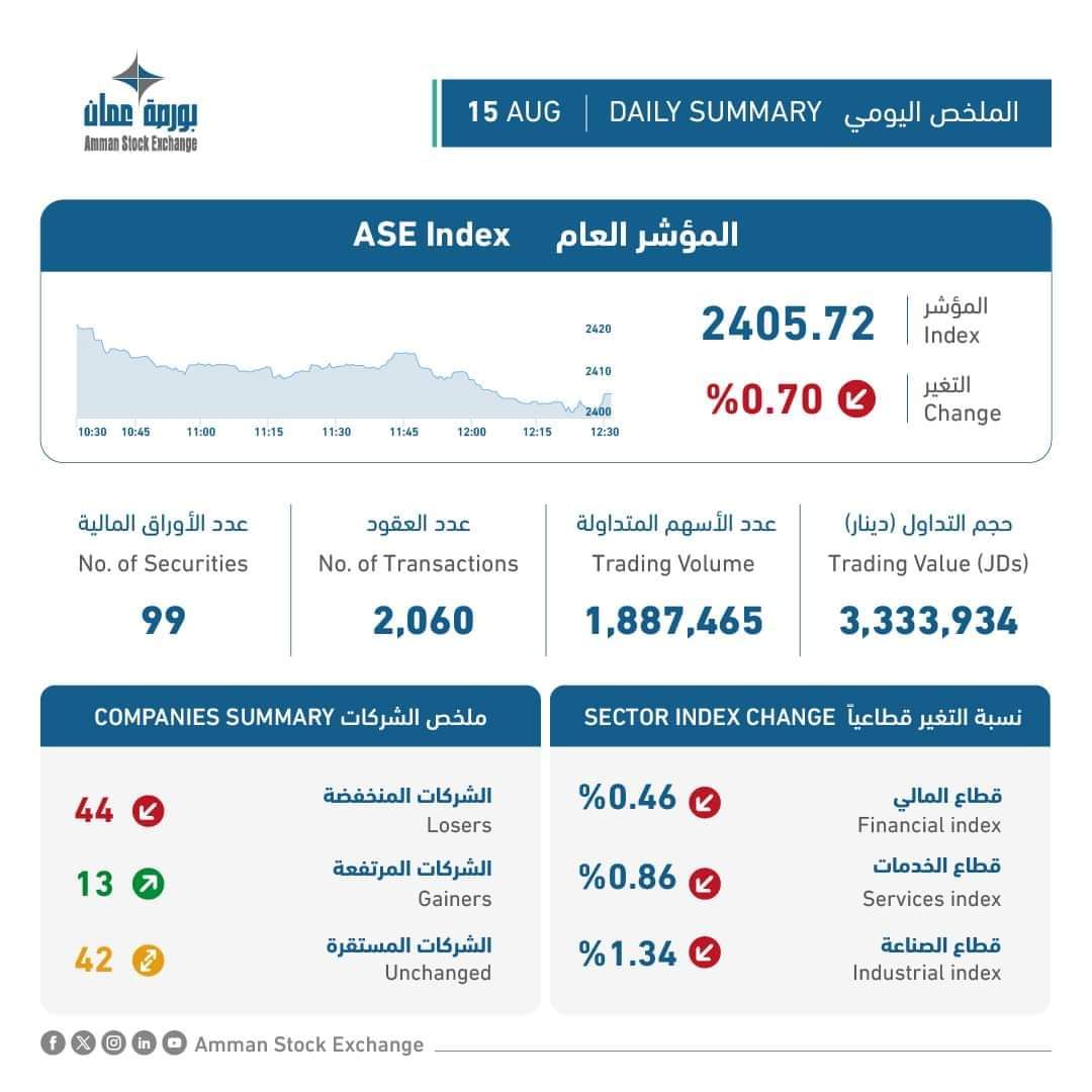 تفاصيل حركة التداول اليومي في بورصة عمان